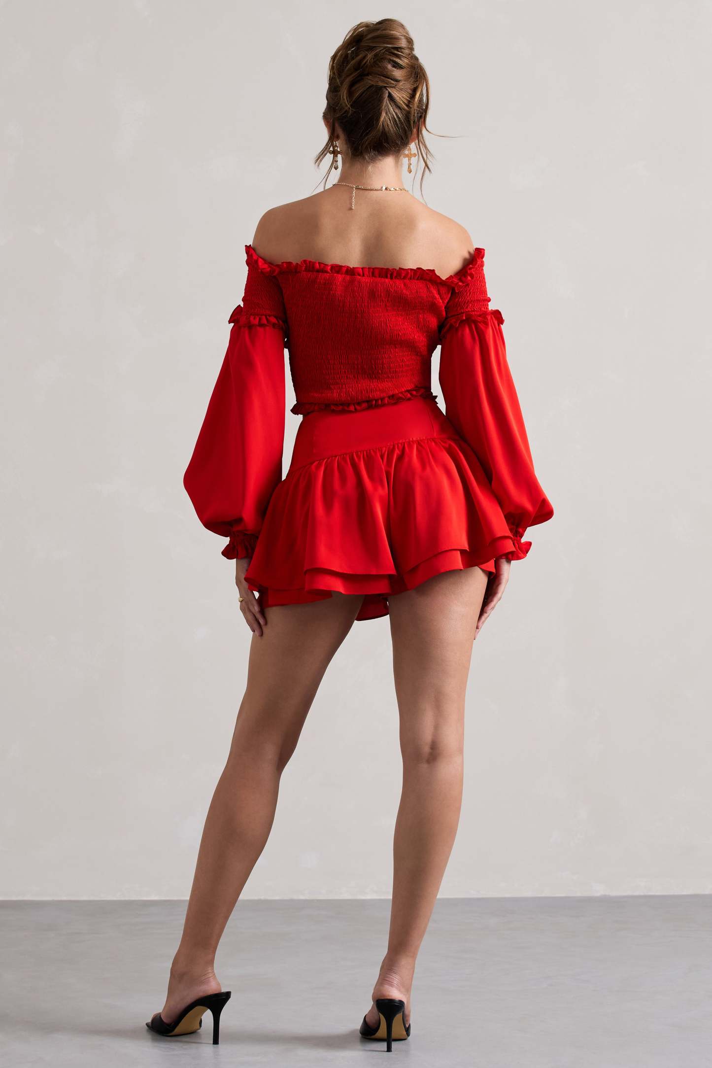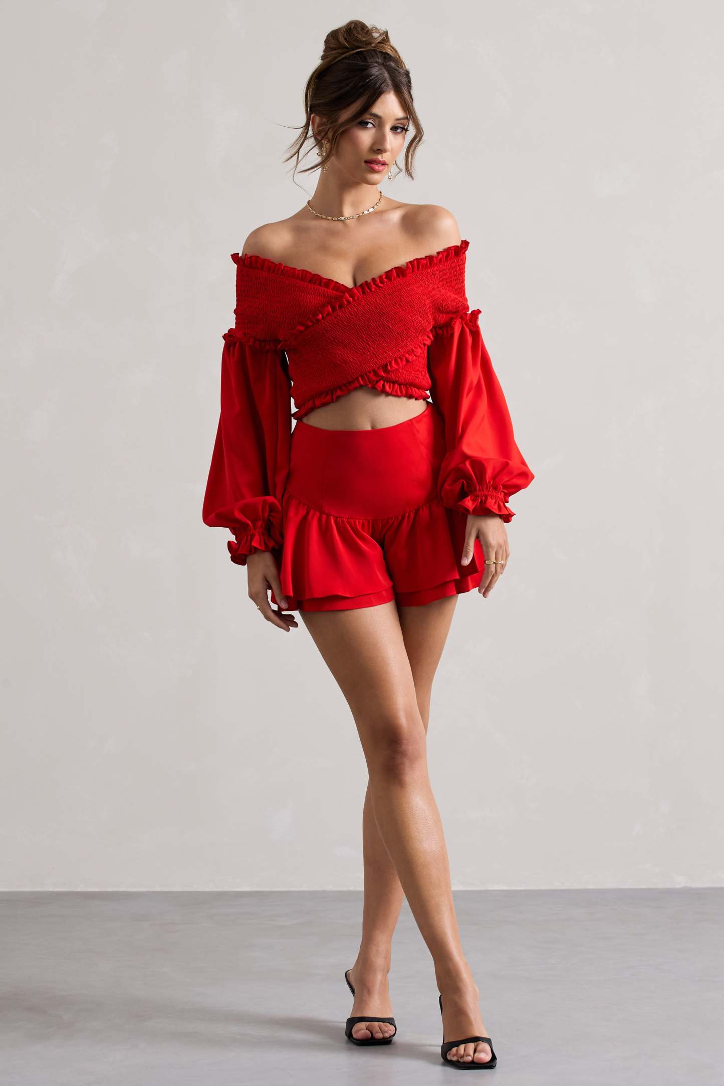 Crafted in a rich red shade of our premium woven fabric, Rossana are a romantic addition to every wardrobe. Defined by their ruffled hemlines and high waist, these shorts were designed to flatter every figure. Made to match, pair yours with our Salara crop top during your next getaway.